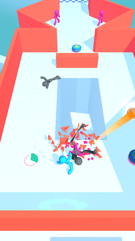 ডিস্ক ম্যান একটি দুর্দান্ত দৈর্ঘ্যে অস্ত্র প্রসারিত করে এবং প্রতিপক্ষের দিকে একটি ডিস্ক নিক্ষেপ করে