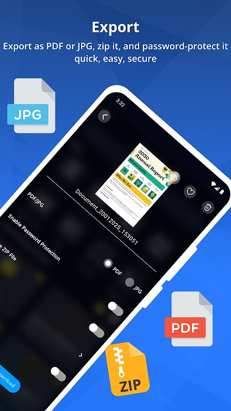 জিপ ফাইলে রপ্তানি করুন: সহজেই একটি একক জিপ ফাইলে নথি সংকুচিত এবং রপ্তানি করুন।