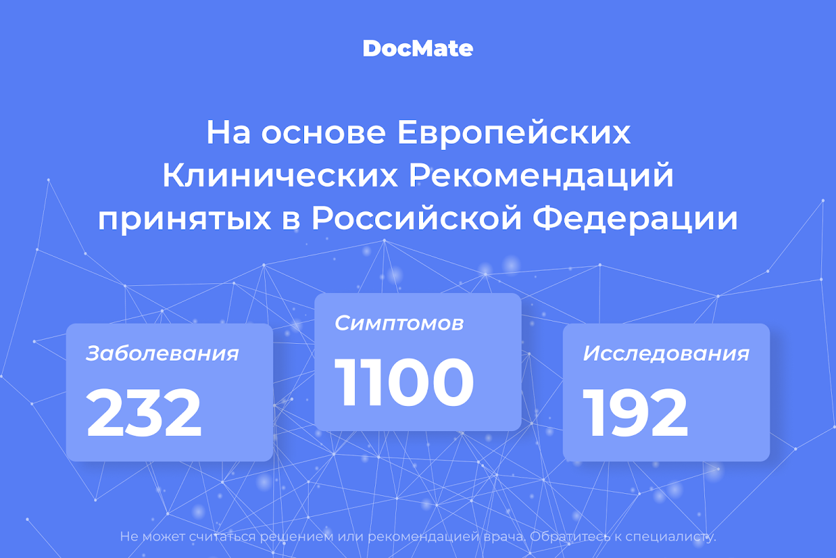 Предоставленная информация предназначена только для информационных и образовательных целей, она не может считаться советом врача, консультацией или диагнозом. Для постановки диагноза обратитесь к врачу.