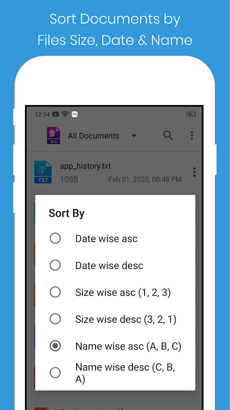 ডকুমেন্ট ম্যানেজার আপনাকে আপনার মোবাইল ফোনে উপলভ্য সমস্ত নথি একক জায়গায় অনুসন্ধান করতে সহায়তা করে।