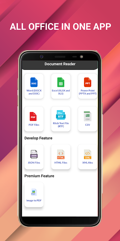 আপনার ফোনে সমস্ত ফাইল ফরম্যাট খুলতে, দেখতে এবং পরিচালনা করার জন্য একটি একক অ্যাপ খুঁজছেন? ডকুমেন্ট রিডার - সবার জন্য এক আপনার অভিজ্ঞতা সহজ করে! এই বহুমুখী অ্যাপটি PDF, Word (DOC/DOCX), Excel (XLS/XLSX), PowerPoint (PPT/PPTX), এবং টেক্সট ফাইল (TXT) সহ সমস্ত প্রধান নথির ধরনগুলিকে সমর্থন করে, যা এটিকে আপনার সর্ব-একটি ফাইল ভিউয়ার করে তোলে। . এটি ডেডিকেটেড ফোল্ডারে বিন্যাস অনুসারে ফাইলগুলিকে সংগঠিত করতে আপনার ডিভাইসটি স্বয়ংক্রিয়ভাবে স্ক্যান করে, যাতে আপনি যেকোনো সময় অনায়াসে আপনার নথিগুলি অ্যাক্সেস করতে পারেন।