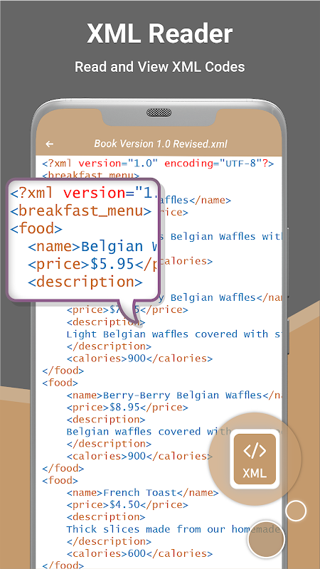 XML: XML Codes can be viewed in this application.