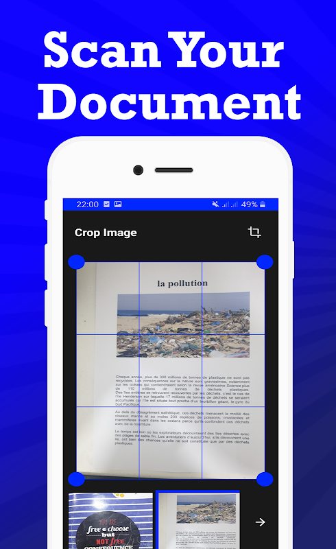 ডকুমেন্ট স্ক্যানার - উচ্চ মানের পিডিএফ ফর্ম্যাট এবং পিএনজি আউটপুটে ডকুমেন্ট স্ক্যান করার জন্য চিত্র থেকে পিডিএফ অ্যাপ্লিকেশন সেরা। বিনামূল্যে স্ক্যান ছবি, লিখিত নথি এবং গ্রাফিকাল উপাদান এবং মুদ্রিত নথি। আপনি ডক স্ক্যানার অ্যাপ্লিকেশন দ্বারা ক্যামেরা রোল থেকে স্ক্যান করার জন্য ছবি এবং ফটোগুলি যুক্ত করতে পারেন। আপনার অফিসে বা বাড়িতে যেমন রসিদ, শ্রেণি নোট, বিল, বইয়ের পৃষ্ঠা এবং যে কোনও কিছু সেকেন্ডের মধ্যেই দ্রুত স্ক্যান করুন। দস্তাবেজগুলি স্ক্যান করা এখন আপনার পক্ষে কেবল ইনস্টল এবং স্ক্যান ফাইল করার পক্ষে আর কঠিন নয়। আপনি যদি স্কুলের ছাত্র, কলেজ ছাত্র, বিশ্ববিদ্যালয়ের ছাত্র, ব্যবসায়িক ব্যক্তি বা অন্য কোনও ব্যক্তি হন তবে পিডিএফ স্ক্যানার অ্যাপ্লিকেশন প্রতিটি ব্যক্তির জন্য প্রয়োজনীয়। ডকুমেন্ট স্ক্যানার - ফ্রি স্ক্যান পিডিএফ এবং ইমেজ টু টেক্সট এমন একটি খুব সহজ এবং দ্রুত অ্যাপ্লিকেশন যা উচ্চ মানের মানের ছবি স্ক্যান করে এবং তাত্ক্ষণিকভাবে পিডিএফ, পিএনজি এবং জেপিজি ফর্ম্যাটে রূপান্তর করতে পারে যাতে আপনি স্ক্যান নথি, নোট, ম্যাগাজিন, নিবন্ধ এবং যে কোনও ধরণের কাগজ ভাগ করতে পারেন যে আপনি চান।