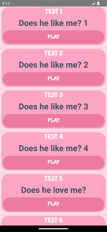 এই কুইজটি তিনি কি আমাকে পছন্দ করেন এবং এই অ্যাপটিতে আরও কুইজ এবং ব্যক্তিত্ব পরীক্ষা রয়েছে যা আপনি নিতে পারেন এবং আমরা ভবিষ্যতে আরও কুইজ যুক্ত করব।
