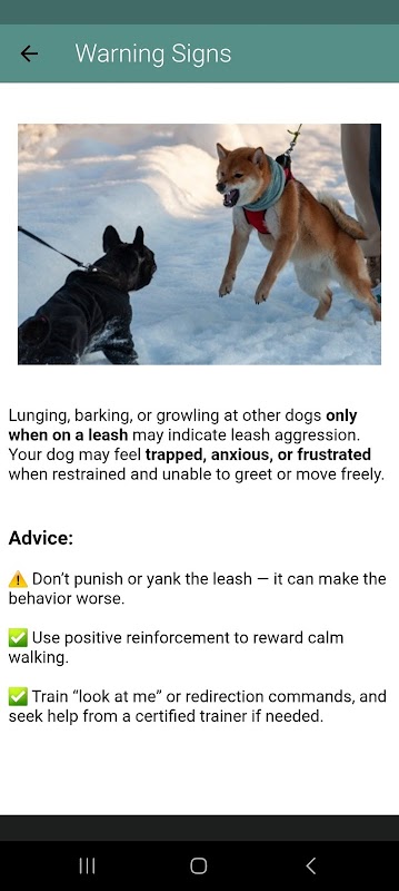 এই অ্যাপটি সাধারণ কুকুর প্রশিক্ষণের জন্য শিক্ষামূলক সামগ্রী সরবরাহ করে। গুরুতর আচরণগত সমস্যা বা আগ্রাসনের জন্য, দয়া করে একজন প্রত্যয়িত পেশাদার কুকুর প্রশিক্ষক বা পশুচিকিত্সা আচরণবিদকে পরামর্শ করুন।