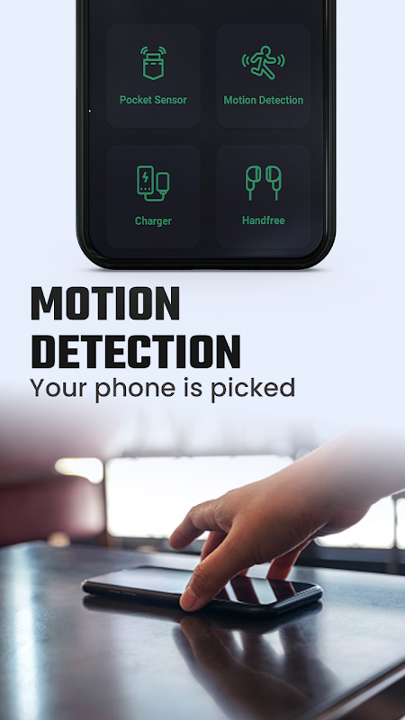 মোশন ডিটেকশন ফিচার আপনার ডিভাইসের নিরাপত্তা নিশ্চিত করে অস্বাভাবিক গতিবিধি শনাক্ত করে। অ্যান্টিথেফ্ট মোশন ডিটেকশন অ্যালার্ম অ্যাপটিতে মোবাইল পকেট নিরাপত্তার জন্য পিকপকেট সতর্কতা রয়েছে।