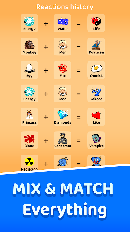 এই গড সিমুলেটরটি সরাসরি উপাদান-মার্জিং গেমপ্লের উপর দৃষ্টি নিবদ্ধ করে, যা আপনাকে আগুন, জল, পৃথিবী এবং বাতাসের সাথে নতুন আইটেম তৈরি করতে এবং আপনার গ্রহকে প্রসারিত করতে পরীক্ষা করতে দেয়। প্রতিটি সংমিশ্রণ একটি কাঠামোগত গেম মেকানিক হিসাবে কাজ করে, অভিজ্ঞতাকে ধাঁধা-ভিত্তিক অগ্রগতির উপর কেন্দ্রীভূত রাখে।