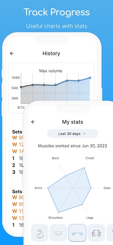আমাদের অ্যাপটিতে শক্তি বা কার্ডিওর জন্য ব্যায়ামের একটি দুর্দান্ত সংগ্রহ রয়েছে, নির্দেশাবলী এবং অ্যানিমেটেড ভিডিও সহ আপনাকে প্রতিটি অনুশীলন সঠিকভাবে সম্পাদন করতে সহায়তা করে। আপনার নিজস্ব ওয়ার্কআউট রুটিনগুলি কাস্টমাইজ করুন, অন্তর্নির্মিত বিশ্রাম টাইমারগুলির সাথে ওয়ার্মআপ, কাজ, ব্যর্থতা বা ড্রপ সেট যোগ করুন এবং সহজেই আপনার সমাপ্তি ট্র্যাক করুন৷