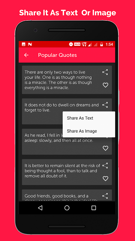 Share the quotes with your friends or put it as your DP using the image option. Share as image lets you set your profile status as a image for all social networks.