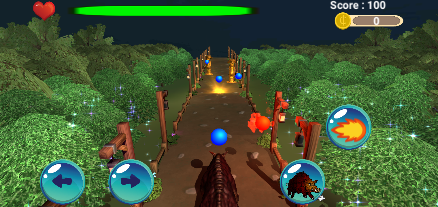 Drive and navigate your Dragon Boar or Flying Dragon through the path while managing to avoid obstacles and various other hazards. You decide how you want to play. Avoid hitting Obstacles and other flying Fireballs and IceBalls and choose your Dragon Type each with their own unique capabilities.