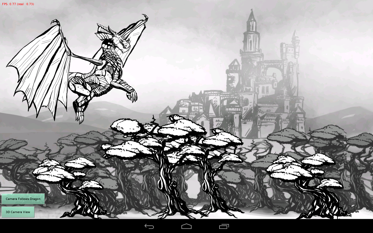 একটি অতিপ্রাকৃত দৃশ্যাবলী উপর একটি ড্রাগন সঙ্গে উড়ে. কাসল খেলা ইঞ্জিন ডেমো.