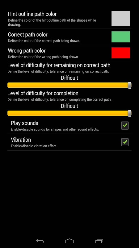 Draw Shapes: The child must draw on the pre-drawn outline of the shape to reveal it. As a reward, the child can draw then multiple shapes of different colors with his/her finger. Parents can customize the level of difficulty and colors.