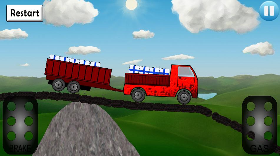 In Conquer-mode you have to get to the top of the mountain. Draw road and then drive. If you can deliver boxes to the goal you get better rating.