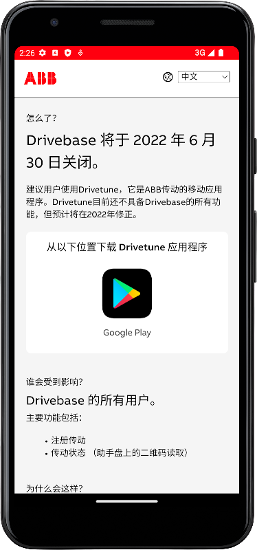 Users are advised to use Drivetune which is the mobile application for ABB drives.