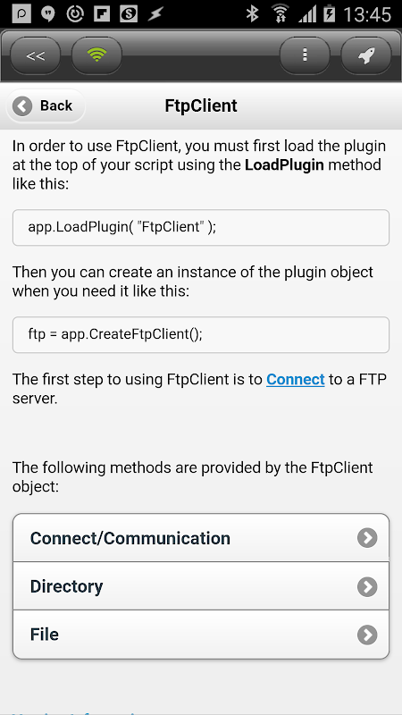 FTP client plugin for DroidScript