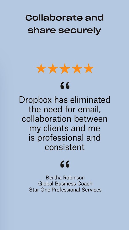 Dropbox is a secure cloud & drive solution leader trusted by Fortune 500 companies for their most sensitive data. Over 14 million paid users choose Dropbox because they know they can count on a company that’s also dedicated to their security and privacy—no matter what they do or where they are. Let Dropbox be your all-in-one file storage, file organizer, file transfer, and file sharing solution for all your devices.