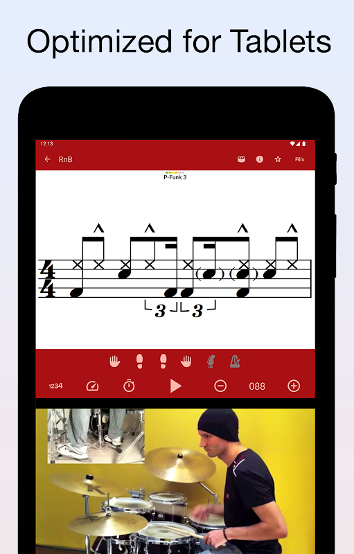- পোর্ট্রেট বা ল্যান্ডস্কেপ মোডে উচ্চ মানের গ্রাফিক্স সহ স্ট্যান্ডার্ড ড্রাম স্বরলিপি।