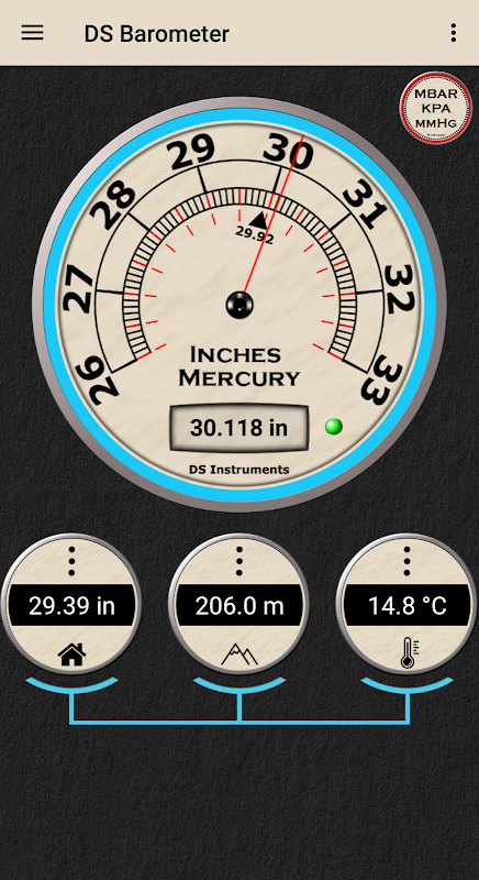 ডিএস ব্যারোমিটার হ'ল ব্যান্ডোমেট্রিক প্রেসার সেন্সর সহ বা ছাড়াই অ্যান্ড্রয়েড ডিভাইসগুলির জন্য একটি সুদৃশ্য কারিগরী ব্যারোমিটার এবং বায়ু চাপ রেকর্ডার।