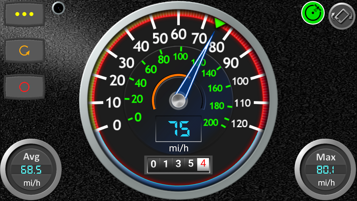 অ্যাপটি একটি সঠিক উচ্চ কার্যক্ষমতাসম্পন্ন স্পিডোমিটার এবং ডিজিটাল এবং এনালগ-স্টাইলের নিয়ন্ত্রণ সহ একটি ড্রাম ওডোমিটার যা একটি পুরানো গাড়ির মতোই নম্বরগুলিকে রোল করে।