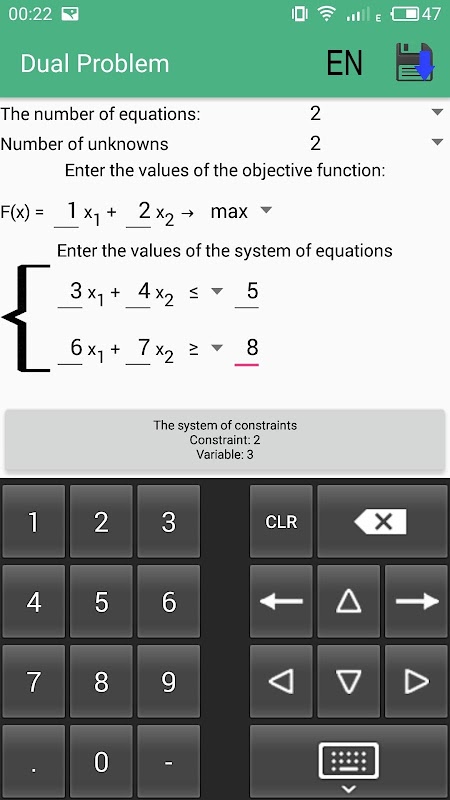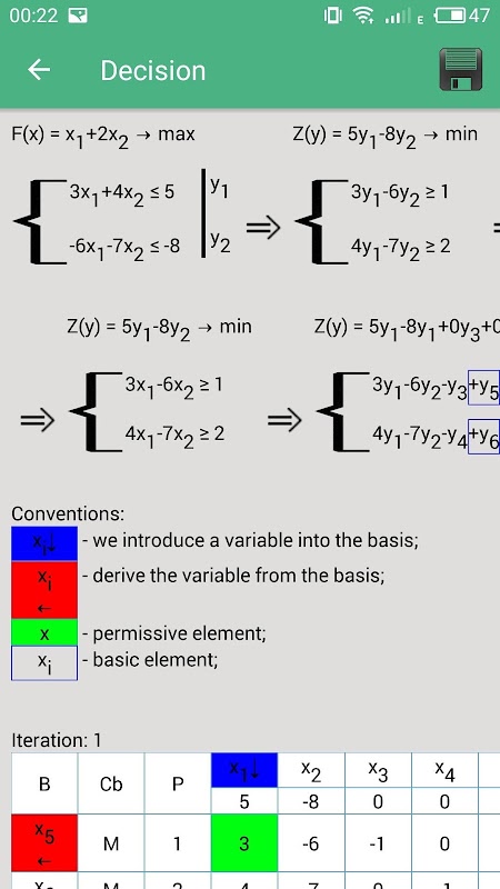 In this application there is an opportunity, very quickly and easily, to solve the dual simplex WITHOUT INTERNET ACCESS. Also in the application a very convenient, understandable interface and solutions are described in detail step by step