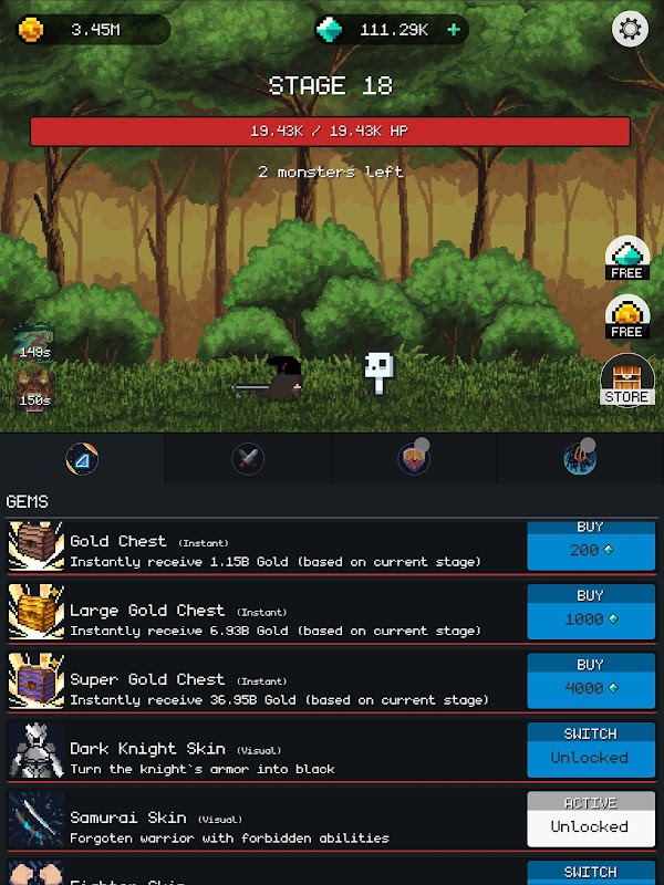 আপনি পরিচিত একটি শীতল সঙ্গীত, ভয়ঙ্কর পুরানো স্কুল pixelated গ্রাফিক্স এবং RPG উপাদান সঙ্গে পরিচিত সব সুপরিচিত ক্রমবর্ধমান নিষ্ক্রিয় বৈশিষ্ট্য। যুদ্ধ দানব এবং BOSSES, মহাকাশ সংগ্রহ এবং এই মহাকাব্য অটোম্যাটাল মোবাইল RPG খেলা আপনার যোদ্ধা স্তর।