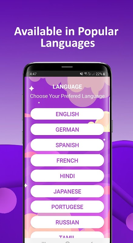 এই অ্যাপটি উদাহরণস্বরূপ (ইংরেজি, ফ্রেঞ্চ, জার্মান, জাপানী, পর্তুগিজ, স্প্যানিশ, রাশিয়ান, হিন্দি, তামিল, তেলেগু) একাধিক ভাষার সংমিশ্রণে অ্যাক্সেস করে যা আপনার ডিভাইস ফাইলকে কোনও ভাষা সহ পড়তে সহায়তা করবে।