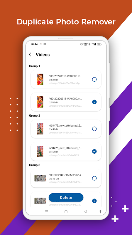 এই অ্যাপটি ডুপ্লিকেট ইমেজ রিমুভার, ডুপ্লিকেট ভিডিও রিমুভার এবং ডুপ্লিকেট অডিও রিমুভারের জন্য কাজ করে।