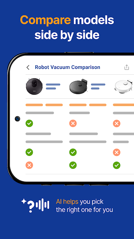রিয়েল-টাইম এআই সহকারী প্রশ্নের উত্তর দেয়, মডেলের মধ্যে পার্থক্য ব্যাখ্যা করে এবং আপনাকে তুলনা করতে সাহায্য করে। ব্যবহারকারীর পর্যালোচনাগুলি থেকে একটি সংক্ষিপ্ত সারাংশ তৈরি করে — শুধুমাত্র সারাংশ, কোনও অতিরিক্ত পাঠ্য নয়৷