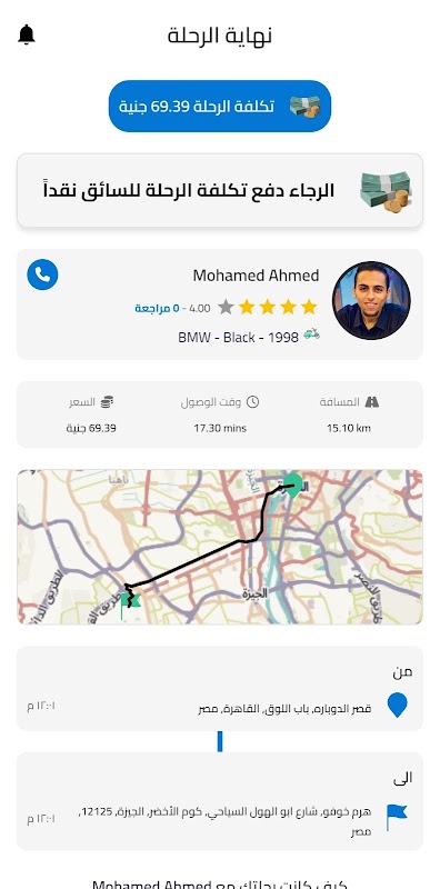 قم بتقييم السائق بعد انتهاء الرحلة.