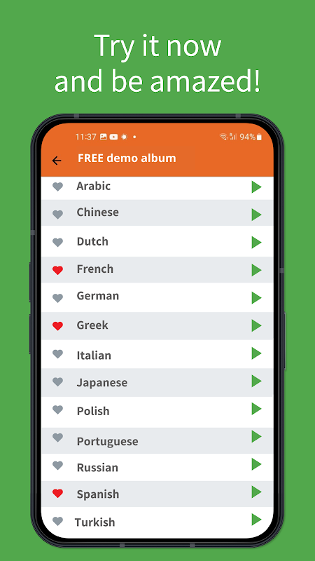 দ্রষ্টব্য: অ্যাপ্লিকেশনটিতে উপলব্ধ সমস্ত ভাষা শেখার সম্পূর্ণ ট্র্যাকের একটি ডেমো অন্তর্ভুক্ত রয়েছে - এবং ডাউনলোড করার জন্য নিখরচায়। তারপরে আপনি অ্যাপের মধ্যে থেকে পুরো কোর্সটি কিনতে পারবেন