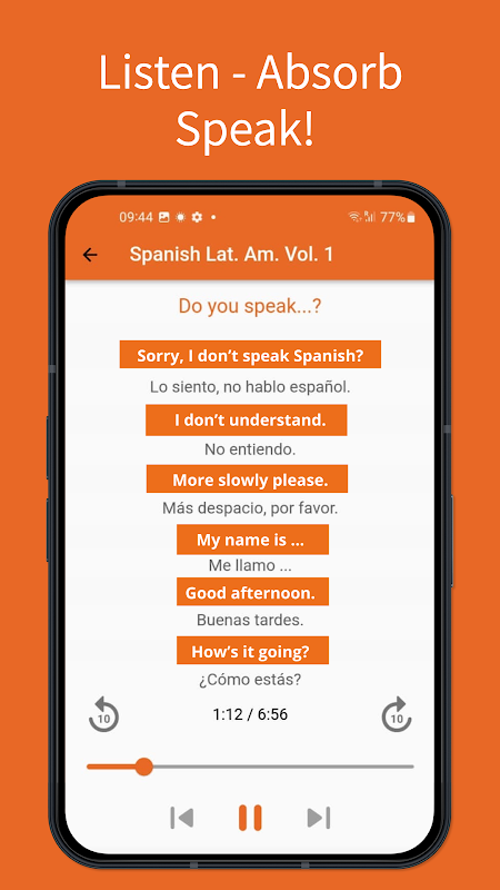* খণ্ড ১. এই ভলিউমটি শোনার কয়েক ঘণ্টার মধ্যে, আপনার কাছে কোনও ভাষা সম্পর্কে পর্যাপ্ত শব্দভাণ্ডার সম্পর্কিত জ্ঞান থাকবে যেখানে ট্যাক্সি নেওয়া, হোটেলে, রেস্তোঁরায়, অনুরোধ করা, ভদ্রতার মতো বাস্তব জীবনের পরিস্থিতি মোকাবেলা করতে সক্ষম হবেন বাক্যাংশ, আপনার উপায়, সংখ্যাগুলি খুঁজে পাওয়া, সমস্যাগুলি মোকাবেলা করা এবং আরও অনেক কিছু।