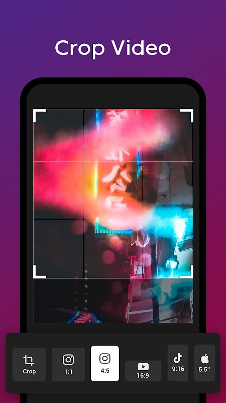 Any যে কোনও অনুপাতের মধ্যে ভিডিও ক্রপ করুন, যেমন 1: 1, 16: 9, 3: 2 ইত্যাদি এইচডি রফতানি, কোনও মানের ক্ষতি হয় না।