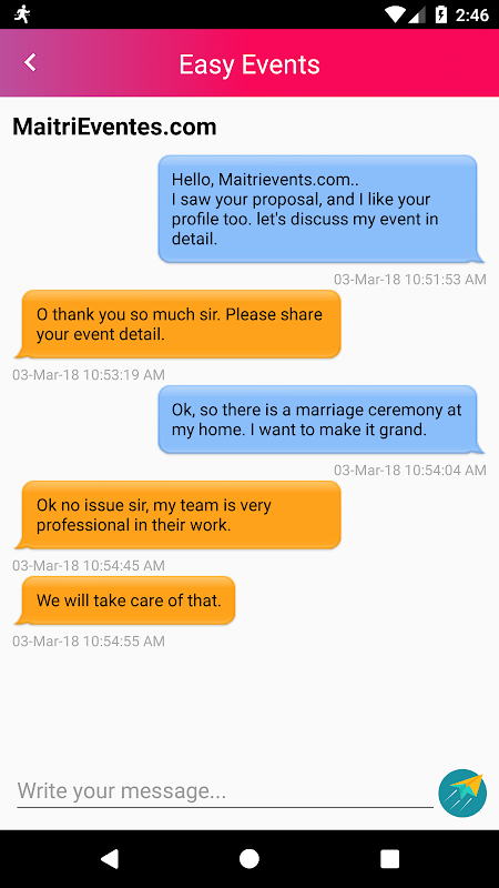 Easy event provide you facility to communicate with all event manager who has applied on your event within the app.