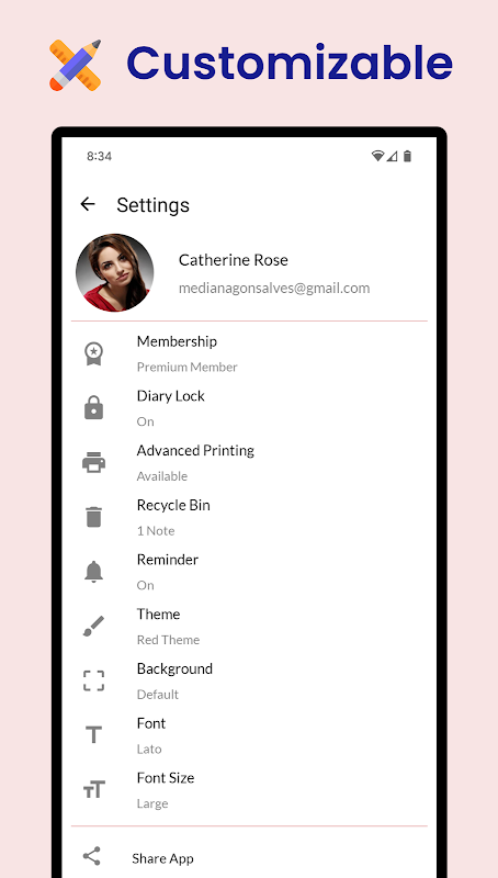 ফন্ট, ফন্টের আকার, ব্যাকগ্রাউন্ড এবং থিম সহ বিভিন্ন কাস্টমাইজেশন বিকল্পের সাথে আপনার নোটপ্যাড অ্যাপকে ব্যক্তিগতকৃত করুন। একটি ডিজিটাল ওয়ার্কস্পেস তৈরি করুন যা অনন্যভাবে আপনার।