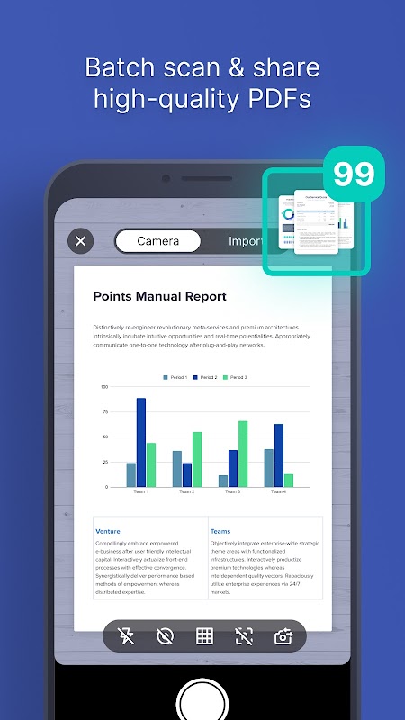 1. ব্যাচ মোডে স্ক্যান করুন: যেখানে আপনি একাধিক ছবি ক্যাপচার করতে পারবেন, আমাদের অ্যাপ আপনাকে একটি পিডিএফ হিসাবে এক্সপোর্ট করার অনুমতি দেবে