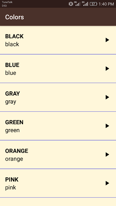 অন্যরা তালিকা শুভেচ্ছা, প্রশ্ন শব্দ, দিন ও দিন, পোশাক, পরিবারের সদস্য ও মানুষ, আবেগ, খাবার, স্বাস্থ্য, বিপরীতের, প্রকৃতি ও আবহাওয়া, বাক্য গঠন এবং আরো অনেক সময় রয়েছে.