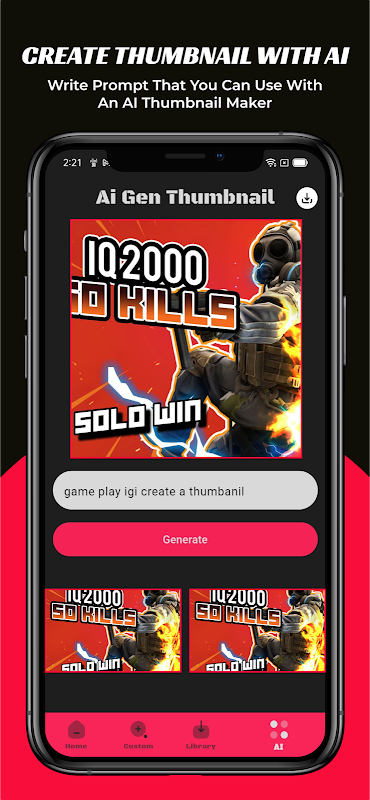 সময় কম? সমস্যা নেই! থাম্বনেইল মেকার একটি অনন্য বৈশিষ্ট্য অফার করে যেখানে আপনি কেবল পাঠ্য প্রম্পট প্রদান করতে পারেন এবং আমাদের অ্যাপটি আপনার ইনপুটের উপর ভিত্তি করে একটি দৃশ্যমান আকর্ষণীয় থাম্বনেইল তৈরি করবে। যখন আপনার তাড়াহুড়োতে থাম্বনেইলের প্রয়োজন হয় তখন এটি দ্রুত, সুবিধাজনক এবং নিখুঁত।