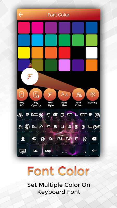সহজ টাইপিং তামিল কীবোর্ড, হরফ ও থিমস, সুন্দর ফন্ট শৈলী আছে রং এমনকি আপনি আরো বৃদ্ধি এবং ফন্টের আকার হ্রাস করতে পারেন