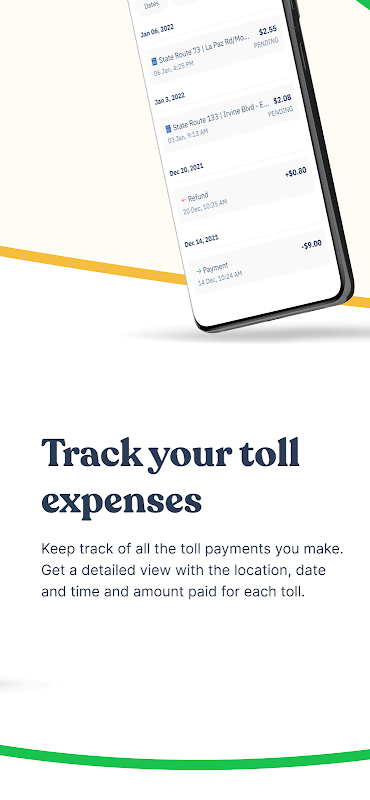 আপনার অ্যাকাউন্টে একাধিক যানবাহন যোগ করুন এবং টোল ট্যাগ বা ডিভাইস ছাড়াই টোল দিতে শুরু করুন। আপনার টোল খরচ ট্র্যাক করতে, ভ্রমণের রুট পরিকল্পনা করতে এবং একাধিক যানবাহন পরিচালনা করতে অ্যাপটি ব্যবহার করুন।