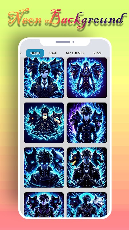 রঙিন আলোর প্রভাব, নিয়ন থিম, জিআইএফ এবং পটভূমি সহ উলফ কীবোর্ড