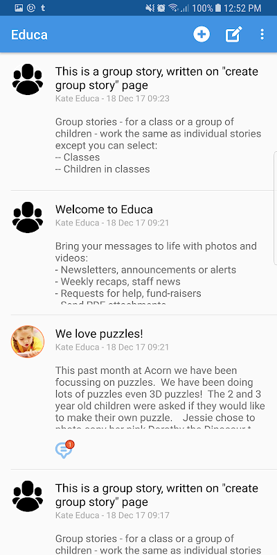 "আমি ভালোবাসি যে আমি সঙ্গে সঙ্গে Educa টাচ ব্যবহার পিতামাতার প্রতি দিন থেকে ফটো এবং স্নিপেট পাঠাতে পারেন। এটি আমার এত সময় বাঁচায়।"