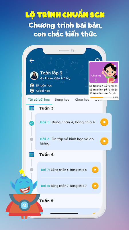 বিশেষ স্কুল শিক্ষকদের সাথে লাইভক্লাস ক্লাসগুলি সাপ্তাহিকভাবে অনুষ্ঠিত হয়, শিক্ষার্থীরা তাদের জ্ঞান পর্যালোচনা করবে, গণিত গেম খেলবে, অনুশীলন পরীক্ষা, গ্রেড এবং সঠিক অনুশীলন করবে।