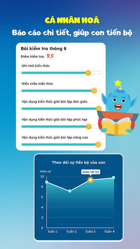 স্কোরিং, শক্তি এবং দুর্বলতা মূল্যায়ন এবং স্কুল/স্থানীয়/জাতীয়ভাবে শিক্ষার্থীদের র্যাঙ্কিং করা। দিন, সপ্তাহ, মাস দ্বারা বিশদ প্রতিবেদন, শিক্ষার্থীদের এবং অভিভাবকদের সময়ের সাথে সাথে সহজেই অগ্রগতি ট্র্যাক করতে সহায়তা করে।