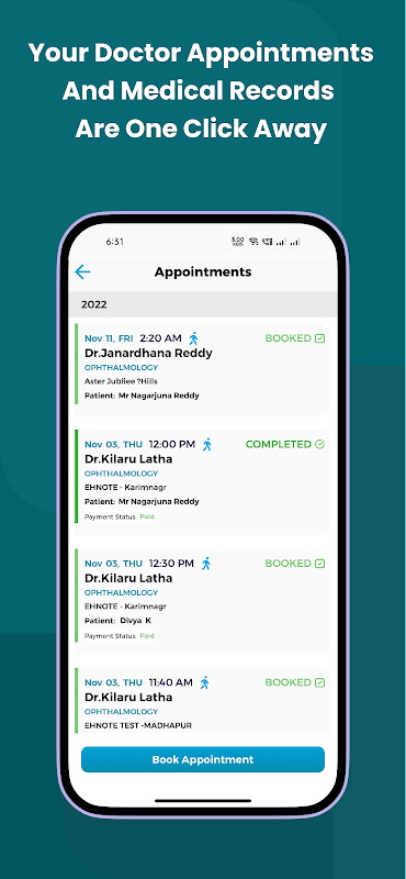 * বইয়ের অ্যাপয়েন্টমেন্ট: রোগী ডাক্তার / হাসপাতালের সাথে অ্যাপয়েন্টমেন্ট বুক করতে পারেন এবং গ্রহণ করতে পারেন