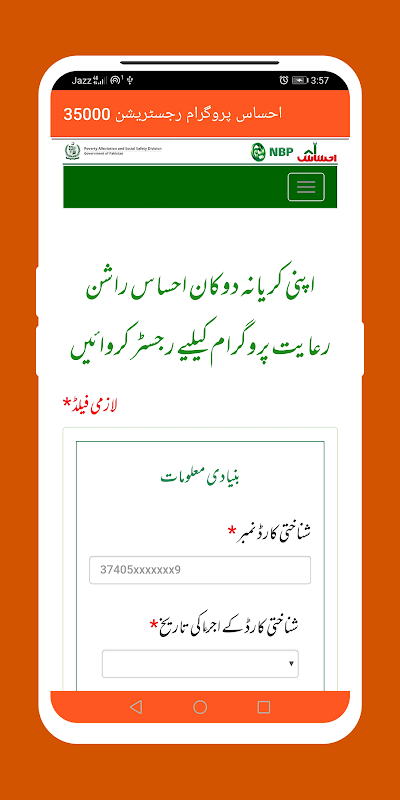 Ehsaas Program Register 35000 একটি অ্যাপ যা আপনাকে Ehsaas Program 2022 এর নিবন্ধন সম্পর্কে গাইড করার জন্য তৈরি করা হয়েছে।