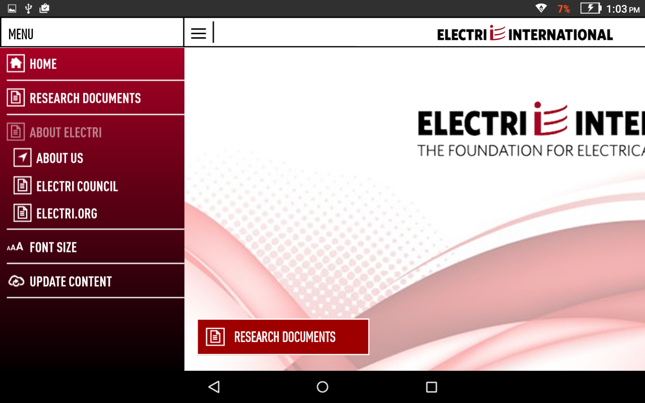 The ELECTRI Mobile app contains electrical industry research content.