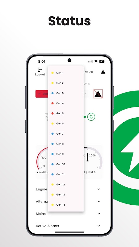 • জেনারেটর কন্ট্রোলারে সম্পূর্ণ রিমোট কন্ট্রোল।