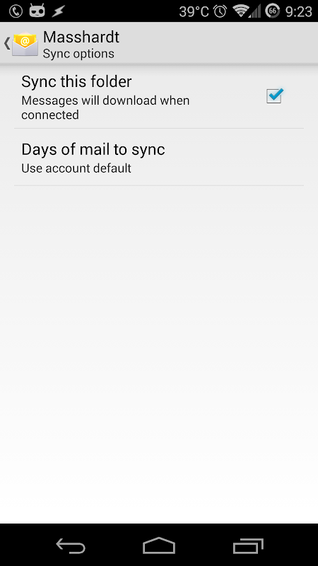 The app accesses the email app database and retrieves the names of the mailboxes, their folders and their serverids. (Required for creating the settings file) When selecting a Folder in the app a configuration file is created for this folder that enables the notification feature of the email app. For notifications to appear the subfolders must be configured to synchronize automatically. (This can be done from the email app menu when opening a subfolder)