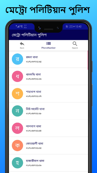 এই এপসটিতে যথাযথ ৬৪ টি সমস্ত থানারের মোবাইল মোবাইল নাম্বার।