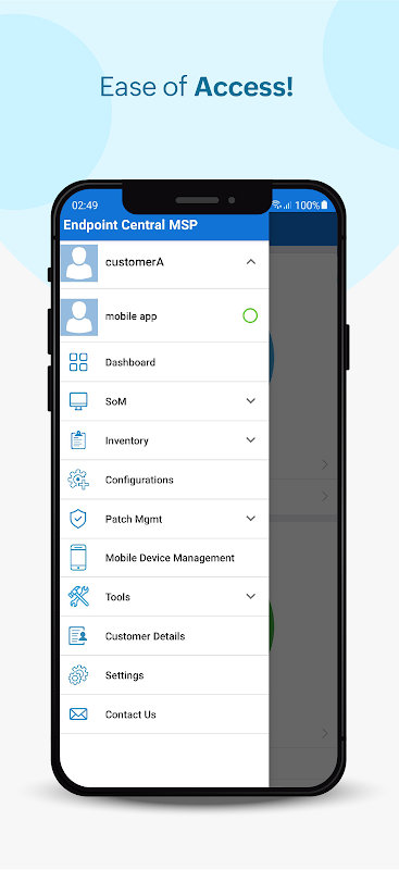 ম্যানেজইঞ্জিন এন্ডপয়েন্ট সেন্ট্রাল এমএসপি অ্যান্ড্রয়েড অ্যাপটি পূর্বে ডেস্কটপ সেন্ট্রাল এমএসপি নামে পরিচিত ছিল, এটি একচেটিয়াভাবে পরিষেবা প্রদানকারীদের জন্য প্যাকেজ করা হয়েছে যাতে সারা বিশ্ব জুড়ে গ্রাহক সার্ভার, ল্যাপটপ এবং ডেস্কটপগুলির সাথে নির্বিঘ্নে সংযোগ স্থাপন এবং যোগাযোগ করা যায়। এটি আইটি পরিষেবা প্রদানকারীদের যেতে যেতে গ্রাহক সিস্টেমগুলি পরিচালনা করতে সক্ষম করে এবং এই রুটিনগুলি করতে অফিসে আটকে থাকা থেকে তাদের মুক্ত করে, যার ফলে তাদের আরও উত্পাদনশীল করে তোলে।